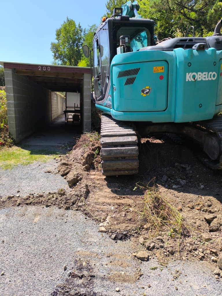 Ces travaux ont nécessité de faire appel à des engins de terrassements (pelleteuses, camions, chargeurs, etc …) maniés par des professionnels. Il ne vous échappera pas que ces travaux ont un cout important impactant le budget de notre club, mais la sécurité prime avant tout !
